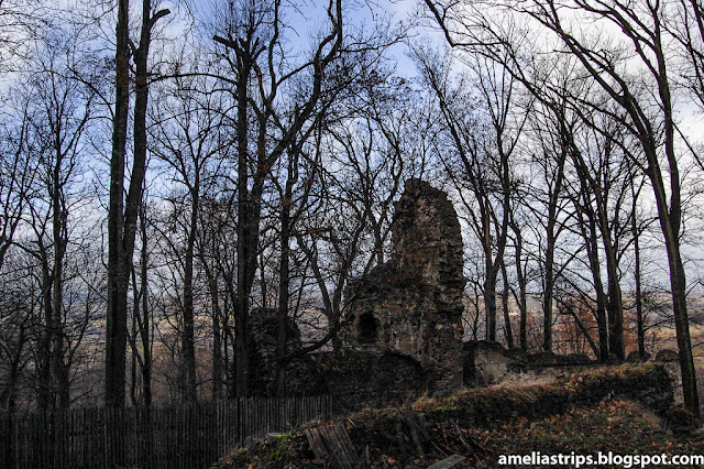 Oprócz psich bud, ustawiono drewniane budki, domki, jakieś płotki... i krzyże, które wiszą prawie na każdym drzewie a dwa duże zostały przybite do średniowiecznych murów tego unikalnego zabytku!